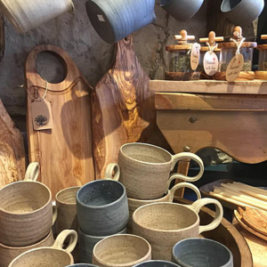 Husband-and-wife team Matthew and Caroline run Beck Steps Gallery in Grasmere. The gallery stocks original, high-quality art and craftwork sourced from artists and craftspeople in Cumbria and other parts of the UK. On the centre table, you can spot two of my 250 ml Hand-thrown Stoneware Ceramic Cups in Dark Blue- Grey and Pale Grey-Blue.