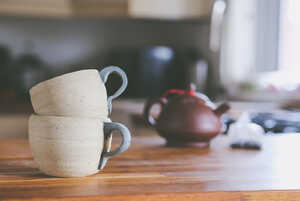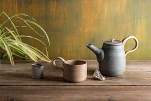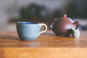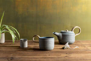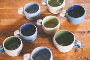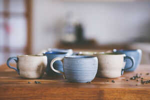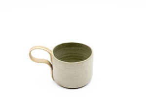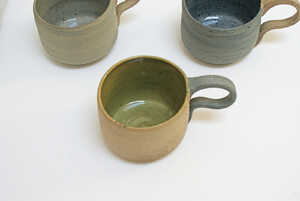 Hannah Timm took these first images in her kitchen in Barry. The dark wood of her kitchen surface was perfect for displaying my work. Over the next two years, the colours adapted as I settled on the ideal transparent glaze for my work and the form of the cup's body was refined to create an ergonomic shape.
