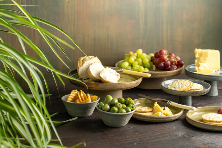The collection includes a wide variety of functional and contemplative pieces — from the three-tier raised cake stand and raised platters to gravy jugs with drip plates, butter dishes, tea plates, and olive bowls. Each item is designed to serve both practical and spiritual purposes. While they elevate your table setting, they also invite pause and mindfulness, encouraging moments of gratitude, connection, and reflection.