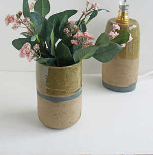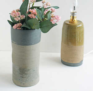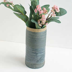 These hand-thrown stoneware vases are perfect for displaying flowers and decorative items or beautifully designed to stand alone. This decorative stoneware vase’s restful colours reflect the British landscape, and the movement of the two colours in the handmade decorative vase is inspired by the relaxing views created in a seascape.