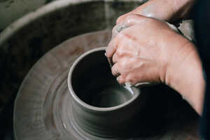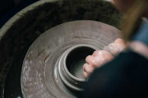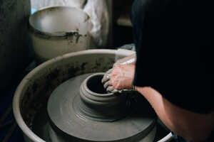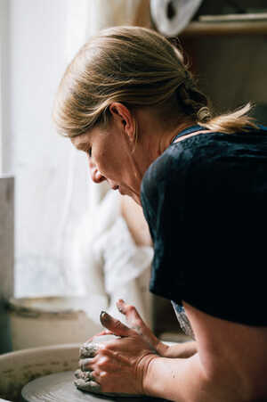 Throwing clay as I am photographed here is my passion both due to the process but also with the ability it gives me to make work that people can use. The connection that my art will be used is as important as the making process.