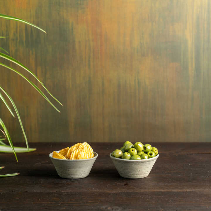 A Set of Two Hand-thrown Ceramic Stoneware Olive Bowls in Pale Blue-Grey and Sandy Beige