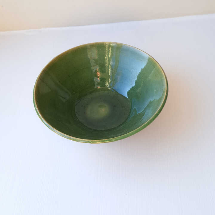 Hand-thrown Ceramic Stoneware Pudding Bowl in Dark Blue-Grey, and Sandy Beige