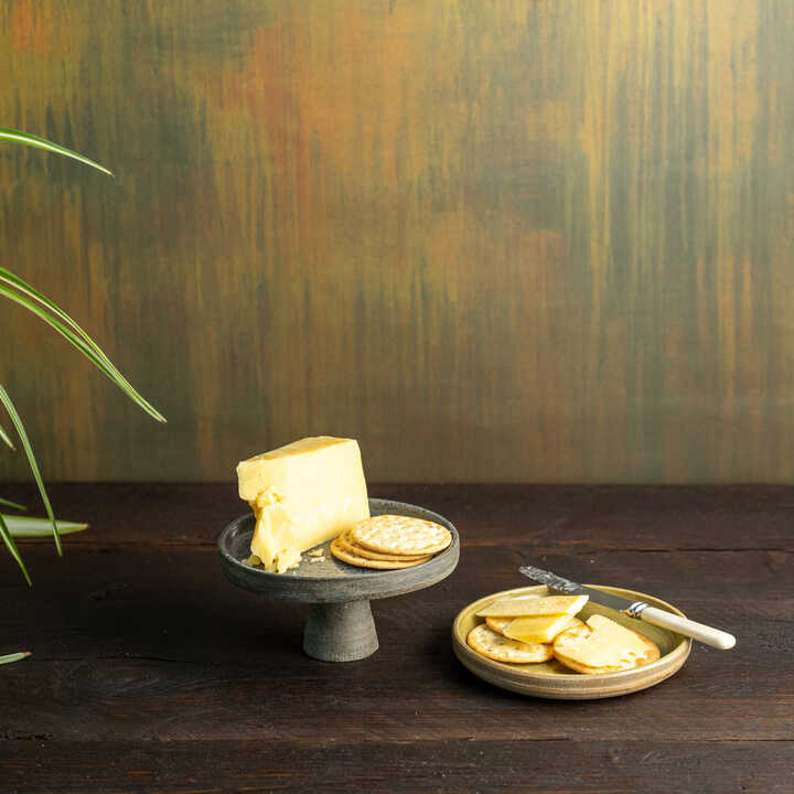Hand-Thrown Small Ceramic Stoneware Serving Board or Cake Stand in Dark Grey-Blue, Pale Blue-Grey and Sandy Beige